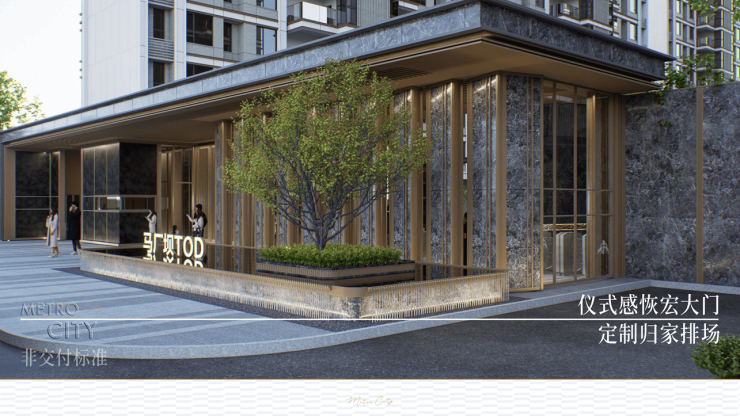 酒店式归家大门、现代简约立面、全景玻璃幕墙、双精装入户大堂