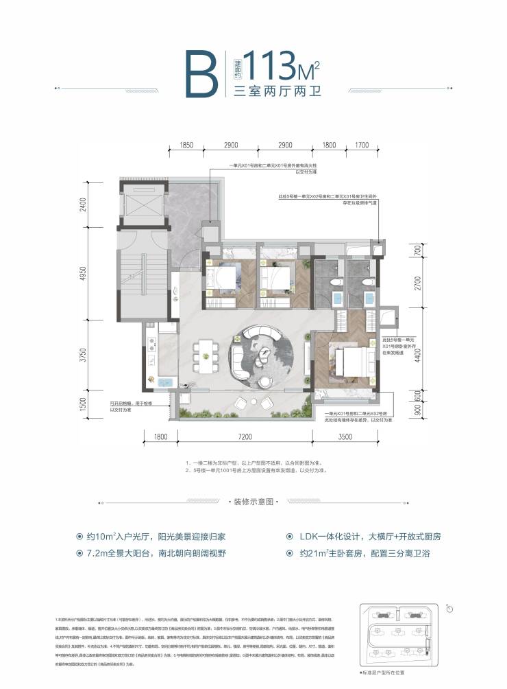 ?户型推荐?户户配置约10㎡入户光厅;全系大横厅+大阳台设计;LDK一体化空间;主次卧奢适尺度保障;精研当代高端家庭生活场景所需,定制化打造人与自然强交互、人与人强交互的家庭社交型空间。