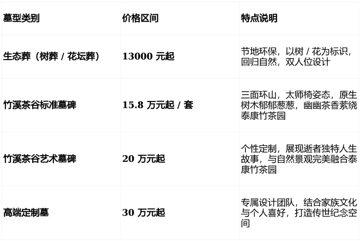 以上价格仅供参考,根据实际需求不同价格有所浮动,部分产品服务暂无,详情请拨打陵园电话咨询确认;