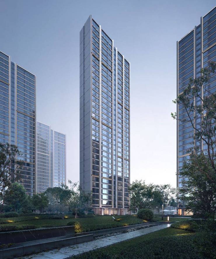 中寰悦府在建筑立面上提炼江城建筑、人文、自然之精华,聚焦流金中心的长江意向,让建筑仿佛垂立中心的一抹长江金。