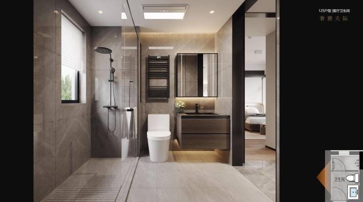 125m²套四双卫横厅设计,大四房得房率107%,套内实得面积约133m²媲美市场其他产品143m²左右套内实得面积