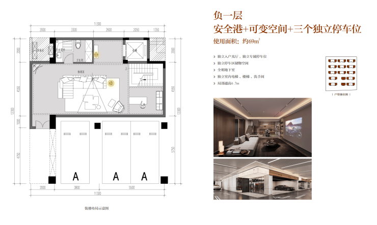 建面约120㎡,实得411㎡,带3个独立车库