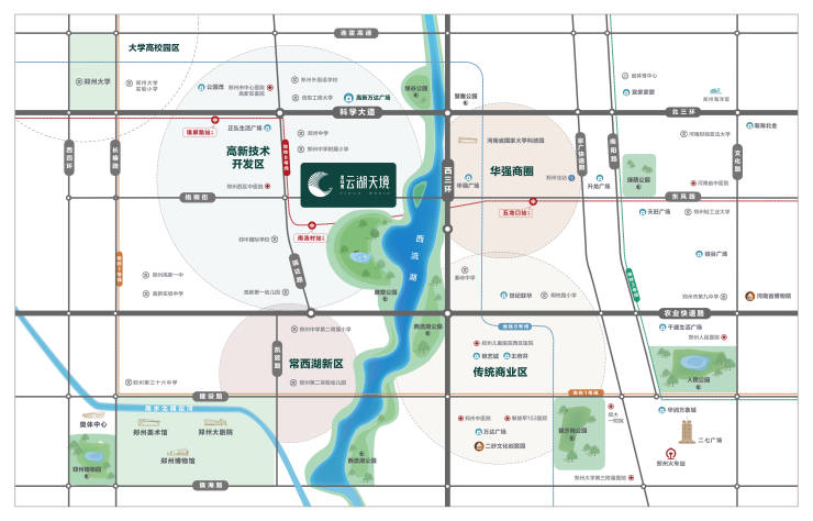 距离项目约600米为地铁8号线站点农业路等3条高架路网,约15min到达会展中心金水西路/东风西路/瑞达路3条主干道通达全城
