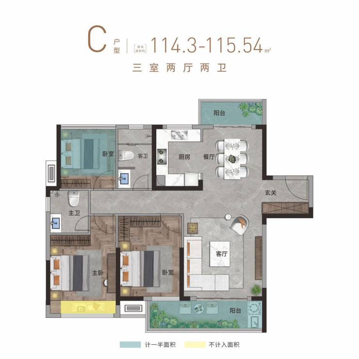 约91%高得房率精研户型,提高房屋实用面积。相当于100平户型,实得91平,享受多一间房的美好,更好满足家庭全生命周期需求。
