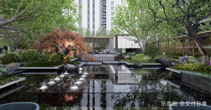 形象入口:约55m面宽,18m横向水景托举艺术雕塑,媲美五星级酒店大堂生活入口:日晷水景暗藏时辰刻度,指引归家路径观景入口:直通市政公园,5分钟切换“繁华-静谧”双生活模式
