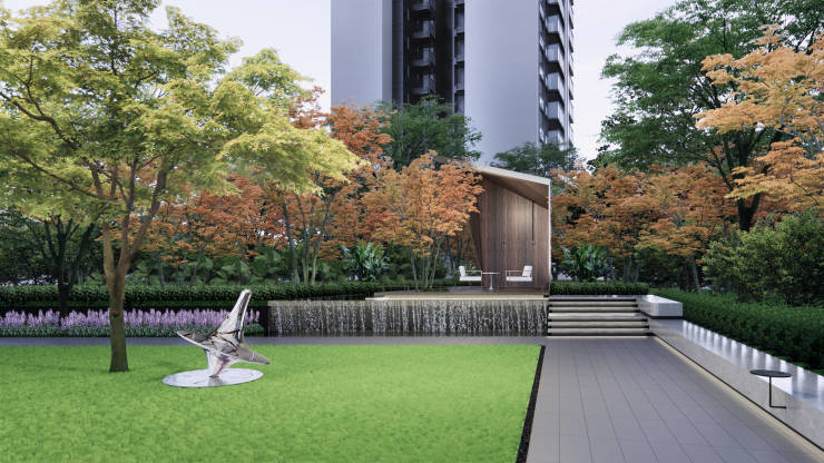 延续建筑的现代雅奢风格,营造简洁大气、时尚的景观空间。7型建筑布局,形成东西-南北两大景观轴线,宅间形成多个集中的花园空间序列;育树引林,自然复兴,依托原生树打造七组植物花园:七组植物,七重空间感受,四季有绿;七重时间花园院落、两条活力环道,打造新成都花园院落。