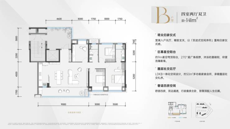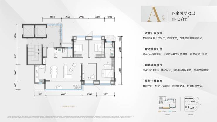项目深谙时代层峯对于居住和生活的品质需求,以建面约127-141㎡奢适四居,精筑与时代层峯气质相符的美学空间。全系纯四房改善社区,圈层更纯粹,高定一个时代的生活藏品。