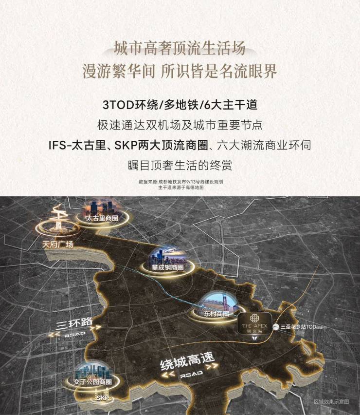 ,扼守主城向南发展主轴,是锦江主城罕见的低密高端宜居板块,上承东大街、金融城繁华,下启白鹭湾新经济活力,兼得主城核心价值与原生生态资源。项目总占地约