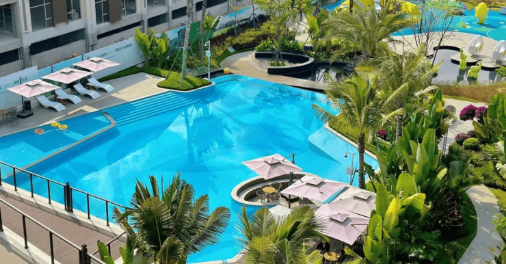 大面积阳光草坪、椰林草地,休闲、赏景、社交、亲近自然
