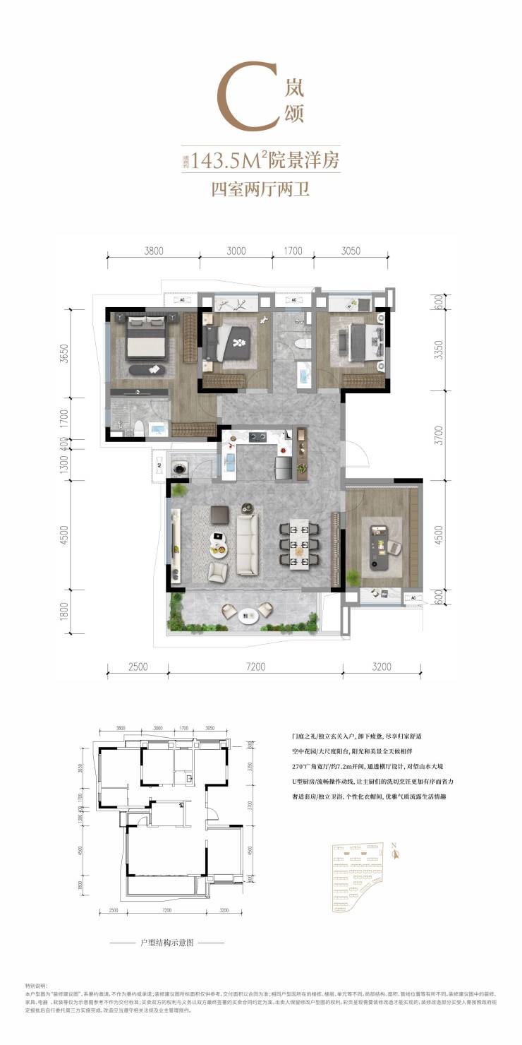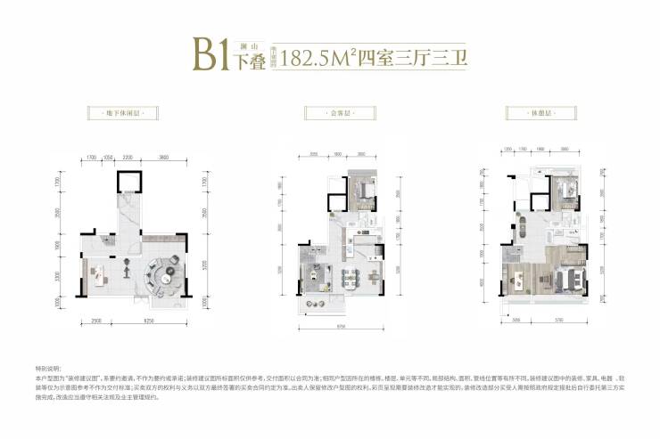 户型面积:洋房118-143.5㎡(三至四房)、叠拼173-235㎡(地上面积)