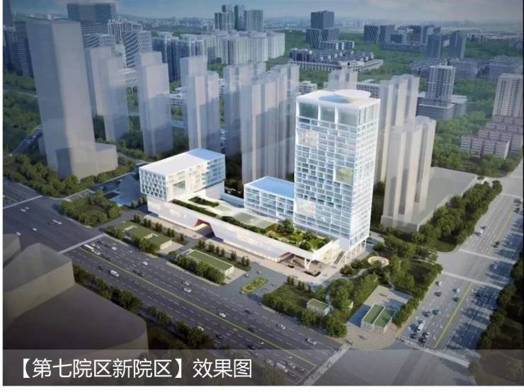 【七医院新院区】位于武昌区和平大道以东、团结路以南、秦园路以北、新长江滨江花园以西,用地面积18939.44平方米,总投资17.55亿元。新七医院为临床科室设置齐全、住院总床位数600张的三级综合医院。该项目2021年4月23日正式开始施工,主体结构于2023年3月15日封顶。