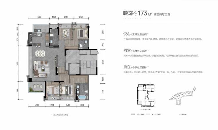173㎡ 四房三卫(2T2)总价:560-580左右