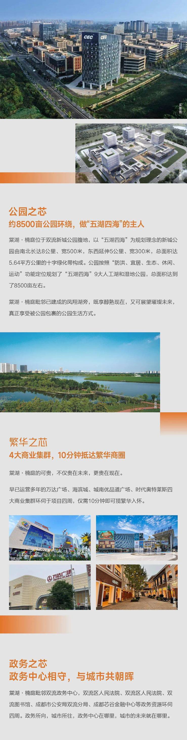 项目占位生态稀贵地脉,直面江安河湾生态景观带,近邻约 200 亩大湖堰公园(距项目约 100 米)、约 500 亩三江公园(距项目约 300 米),周边更有 7 大城市公园与 3 条生态景观带环抱。以 “一河双公园” 为生态基底,构筑城市罕见的自然栖居地,推窗即揽绿意河景,出门即享公园谧境,真正实现 “出则都市繁华,入则自然静谧” 的理想生活,生态稀缺性与居住舒适度拉满。