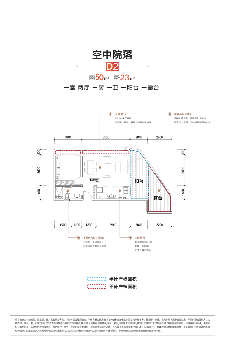 空中院落:50m²一房,63-75m²两房,90-98m²三房