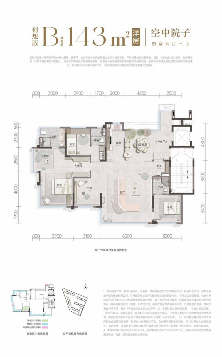 143㎡·四房两厅三卫·空中院子▪️建面约:143㎡ ▪️花园私屿院落约30㎡餐厨花园+56㎡社交厅+270°转角环绕舱▪️西贵生活私享空间满足三代西贵生活独立与私密,赋予生活留白▪️恋人主卧3.0约40㎡独立小家化主卧套房,搭配X空间(微型影院、蜜月花园、幸福茶室焕变场景)