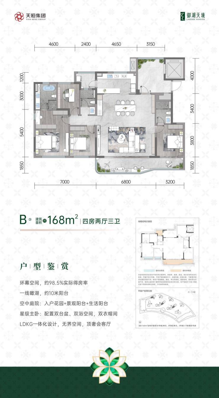 天恒御湖天境位于成都三环湖居,1.5低密纯改善住区,拥湖景、精装大平层,国企开发,高端湖居。