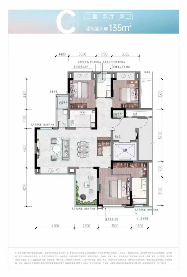 •总层高:二期12-17F(一楼4.5米架空层无住宅)三期9-17F
